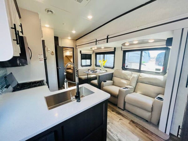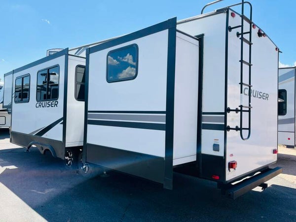 The 2022 CrossRoads Cruiser Aire 32BH is designed for big family adventures without sacrificing comfort or style. This spacious bunkhouse fifth wheel offers three slide-outs, a separate rear bunk room with its own half bath, and a private master suite—making it perfect for extended stays, full-timing, or epic weekend getaways.