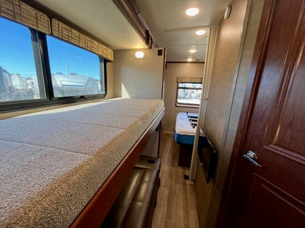 Comfort & safety: Diesel engine with substantial torque makes highway and mountain travel easier; heavy chassis frame and advanced suspension (depending on year) improve ride quality. Full-size king or queen bed (depending on configuration) in master.